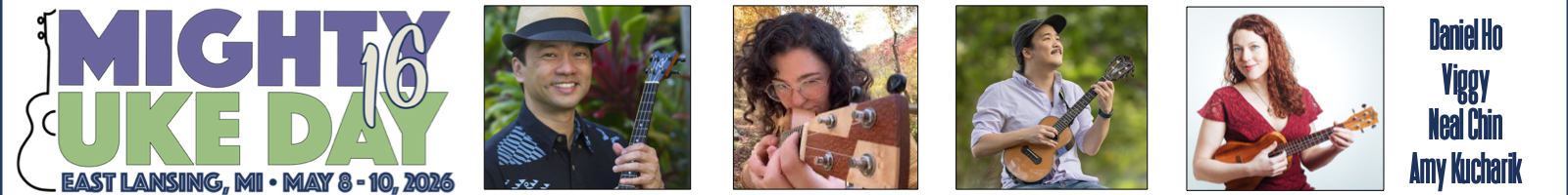 Over the years, Mighty Uke Day has featured the finest teaching artists and performers in the ukulele community. This year is no exception with headliners Daniel Ho, Viggy, Neal Chin, and Amy Kucharik along with other instructors and performers.